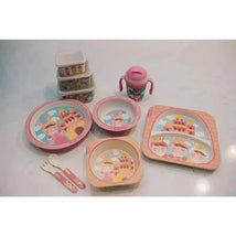 Primo Passi - Super Combo Infantil Fibra de Bambu - Prato Quadrado Dividido, Tigela Quadrada, Garfo e Colher e 3 Recipientes Com Tampas - Pequeno Elefante