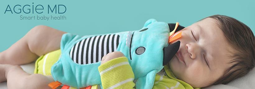 Aggie MD é uma marca que oferece soluções inteligentes de saúde para bebês. Aggie MD criou um Gripebelt que proporciona alívio de cólicas, gases e refluxo por uma bolsa quente ou fria que é inserida dentro de um monstrinho fofo e colorido feito de pelúcia com brinquedos sensoriais presos para distrair o bebê enquanto usa a faixa da cintura do bebê.