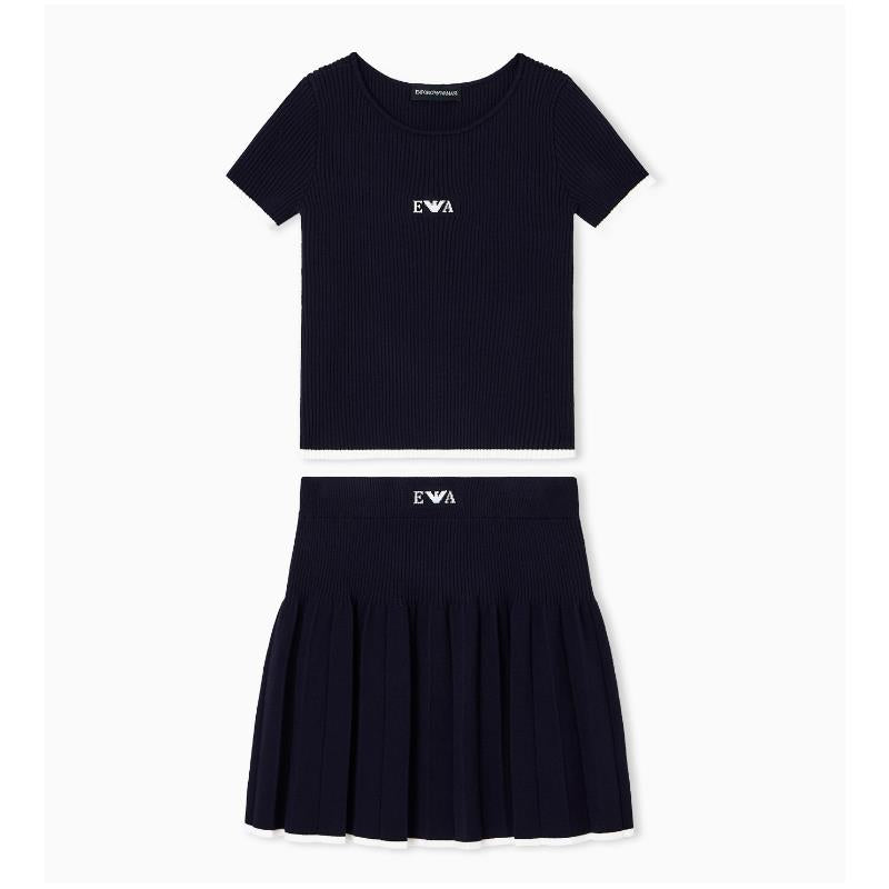 Set consisting of sweater and skirt made of ribbed knit. A sophisticated and comfortable option, perfect for creating a refined and versatile look. The ribbed texture adds a touch of originality, making this outfit ideal for different occasions.