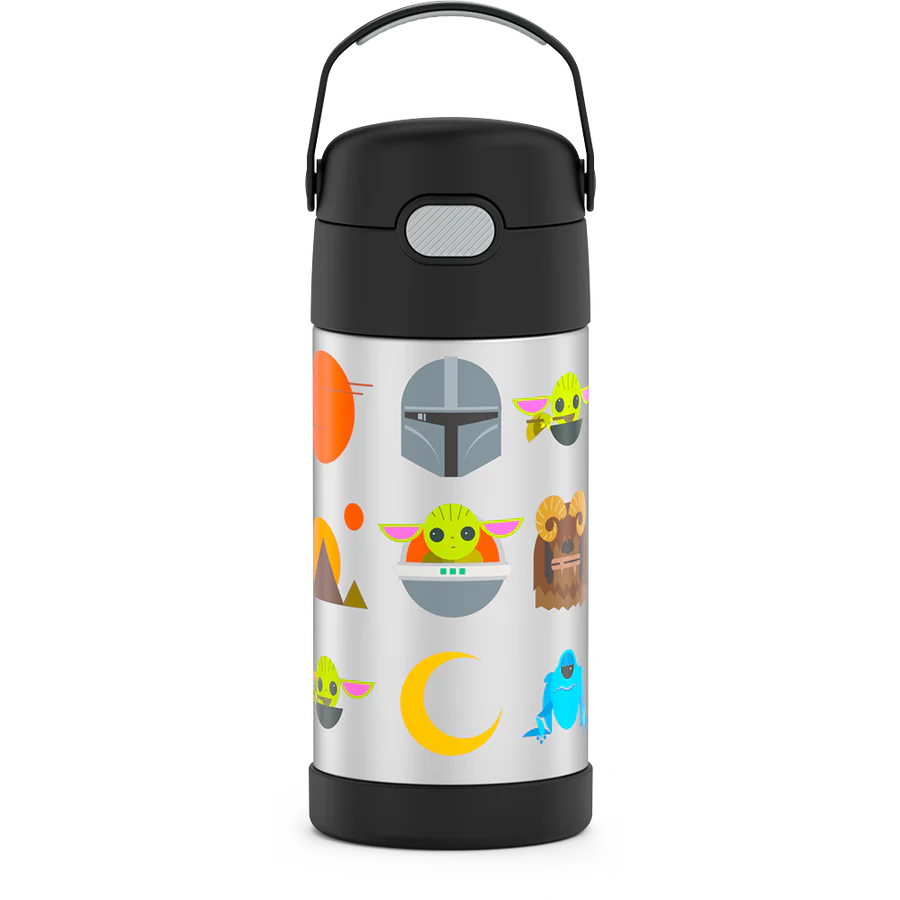 Garrafa térmica - garrafa de palha de 12 onças isolada em aço inoxidável, mandaloriana