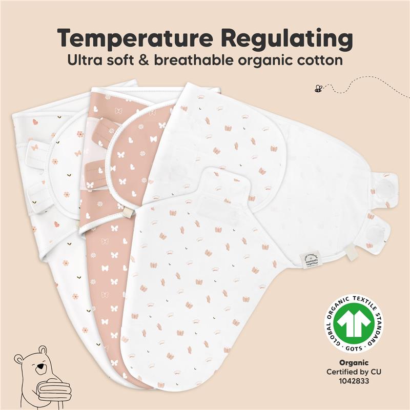 Keababies - 3Pk Soothe Baby Swaddles, Sleep Sack For Newborns, Butterflies 0/3M