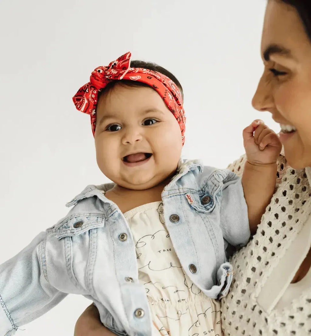 A coleção PRINTED KNOT inclui lindos florais e padrões modernos que manterão seu bebê como o criador de tendências no playground.