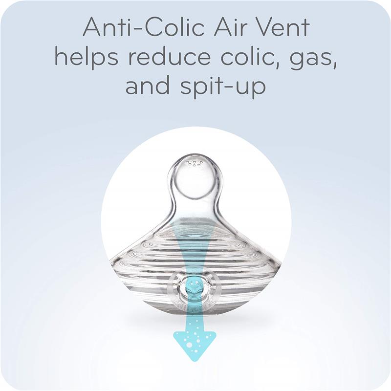 Additionally, these bottles are fitted with an advanced 1-piece Anti-Colic Air Vent that not only helps reduce colic and gas but also lessens the chances of your baby spitting up.