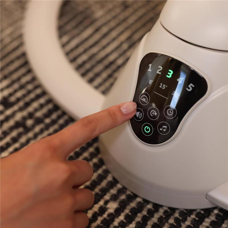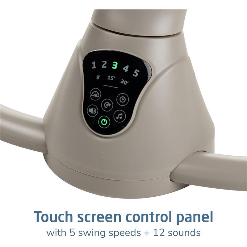 Swing smartly in style with the Cassia Swing, designed to give you freedom and flexibility while comforting your little one. The automatic motion detection (with on/off button) senses when your infant needs extra soothing and activates the swing. Its built-in touch screen panel allows you to select from 5 swing speeds, plus 12 melodies and nature sounds to keep baby relaxed and entertained. The 360 rotation helps you both feel connected and engaged. At only about 10 lbs., the Cassia Swing is easy to transport from room to room.This piece combines innovative, lightweight design with a sophisticated, modern color palette intended to blend beautifully with your dcor. Select color options feature EcoCareour new premium, future-friendly, 100%-recycled fabricmadefrom plastic bottles. The yarn produced is soft,comfortable, and breathableperfectfor your little one. Cassia was made to bring tranquility into a busy day by providing soothing comfort for baby plus convenience for you, and ultimately enhance your quality time at home. For babies up to 20 lbs.Never let babies sleep in rockers, bouncers, or swings.