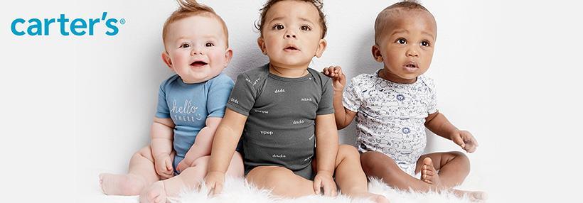 A Carter's é a marca líder de roupas, presentes e acessórios infantis nos Estados Unidos. Eles estão sempre atentos a cada pequeno detalhe para tornar o vestir mais fácil para a mãe e a vida mais confortável para os bebês. Os seus designs assentam numa herança de qualidade e inovação que lhes valeu a confiança de gerações de famílias! Bodys, bodys, pijamas, luvas, toalhas, móbiles de berço, conjuntos de cama, calendários e cartões fotográficos são alguns de seus produtos.