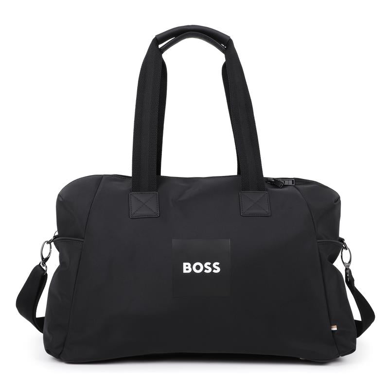 Immerse yourself in practical style with the BOSS changing bag, which combines elegance and functionality. Crafted from polyester canvas and faux rubber, this bag stands out with its chic embossed logo on the front. Equipped with a changing mat and multiple pockets, you can easily organize all your baby's essentials. The washable lining and reinforced trims ensure durability while maintaining a timeless look.