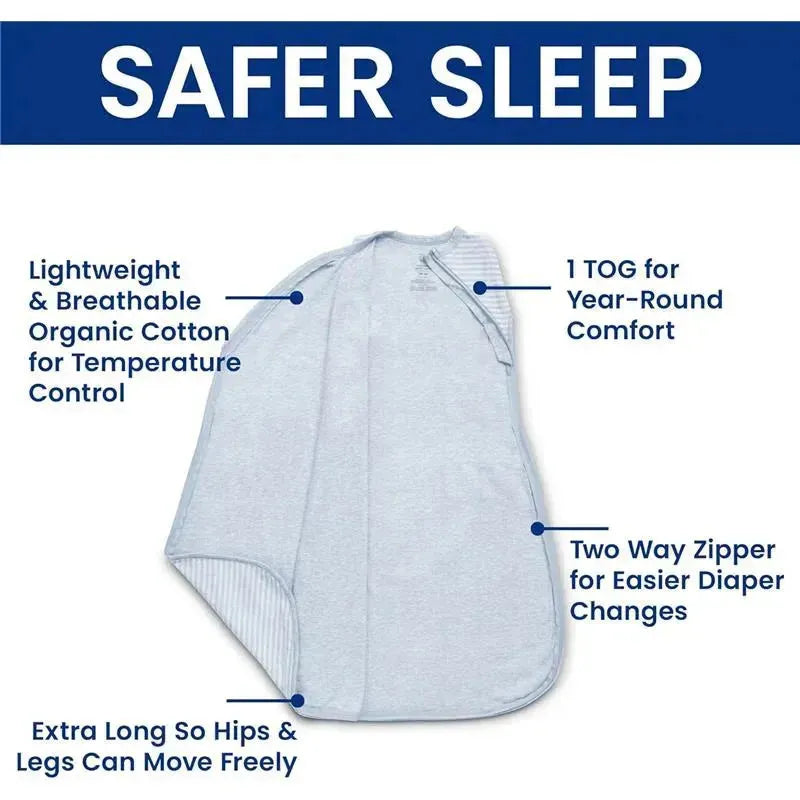 SONO MAIS SEGURO: O saco de dormir mantém as pernas do bebê livres em vez de enrolá-las firmemente, ajudando a prevenir a displasia do quadril | Ajuda a criar um ambiente de sono seguro, eliminando o perigo de cobertores soltos; a classificação TOG 1 mantém o bebê confortável o ano todo