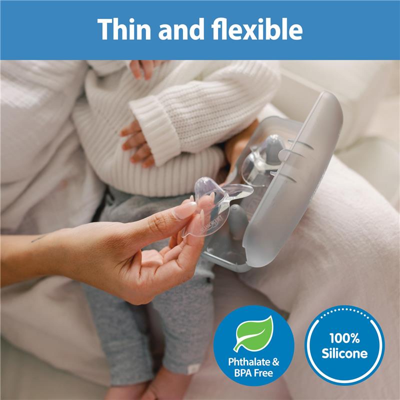 Experience a more natural feeding experience thanks to the thin, flexible silicone that readily warms up to match your skin temperature. The shields are designed with multiple holes, mimicking a natural feeding experience.