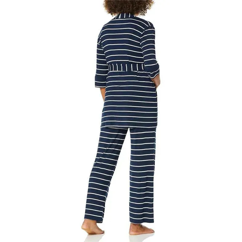 Everly Grey – Conjunto de calça PJ de maternidade e amamentação para mamãe e bebê, listra azul marinho, grande