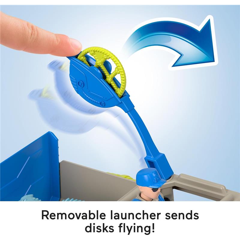 ?Truck also has fold-down ramp for loading & unloading, plus a movable launcher kids can use to send disks flying