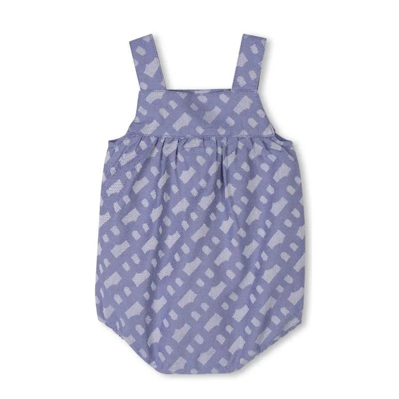 Dress your little one in effortless style with this BOSS Kidswear bloomer and hat set. Made from soft cotton, the set features a chic jacquard logo motif for a signature touch. The sleeveless bloomer offers a lightweight feel with a curved hem for added charm, while the matching hat provides sun protection with its wide brim and adjustable fit. A perfect blend of comfort and elegance for warm-weather outings.