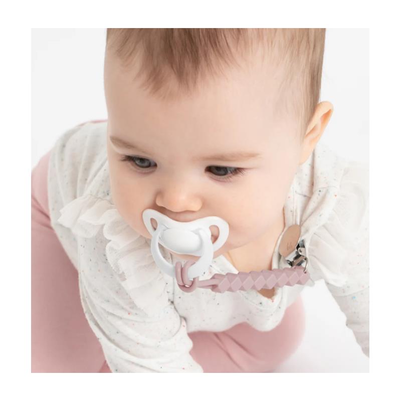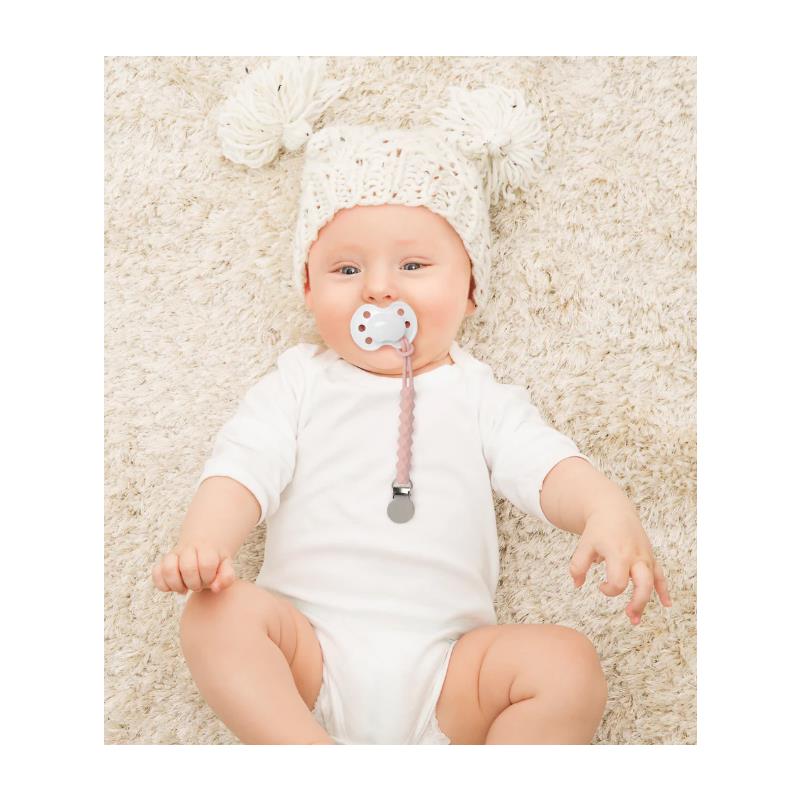 Envision a pacifier holder of such slender grace, it seems to float weightlessly, blending effortlessly with your little one's outfit. Imagine it whispering a lullaby of comfort against your baby's cheek, so soft and smooth, it feels like a second skin.