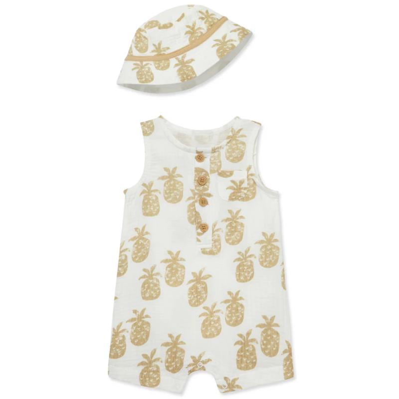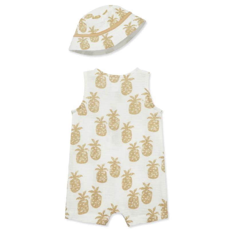 This boys' pineapple cotton gauze romper and matching hat is sweet from the inside out!