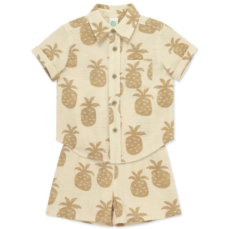 Little Me - Baby Boy Pineapple Woven Short Set, Tan