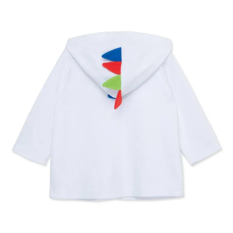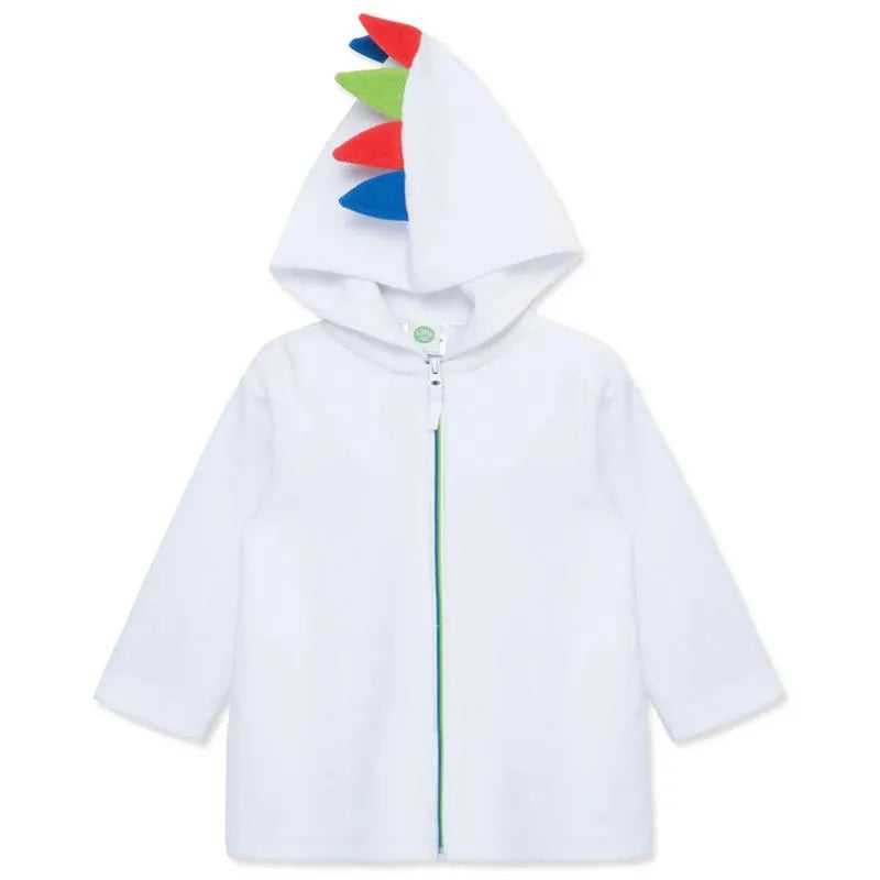 A boys' robe zip cover-up with dino spikes on the hood is perfect for beach or pool days!