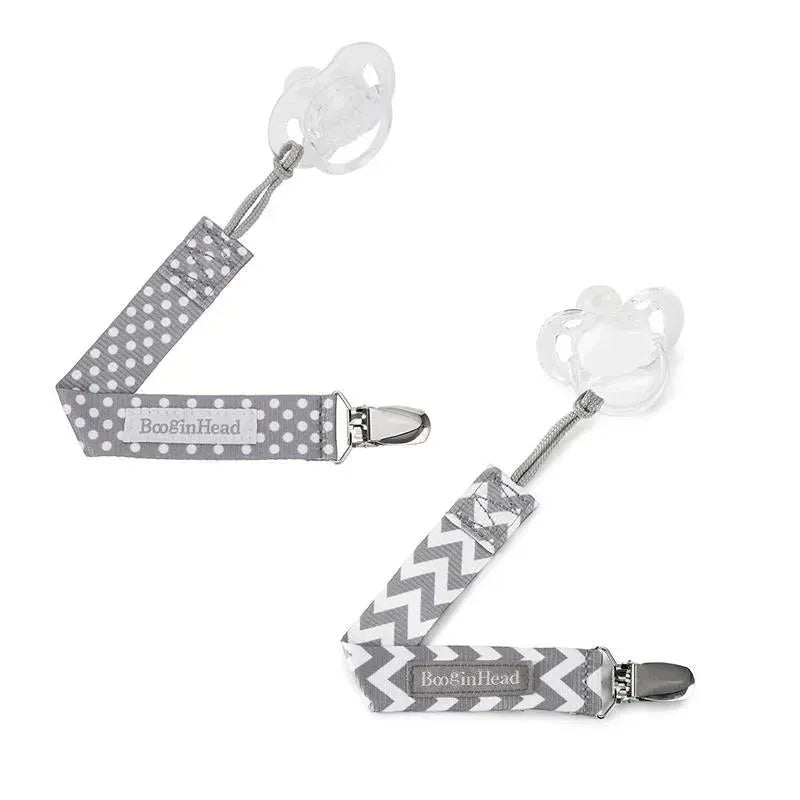 Booginhead - Clipe de chupeta Pacigrip 2Pk, Chevron cinza/pontos