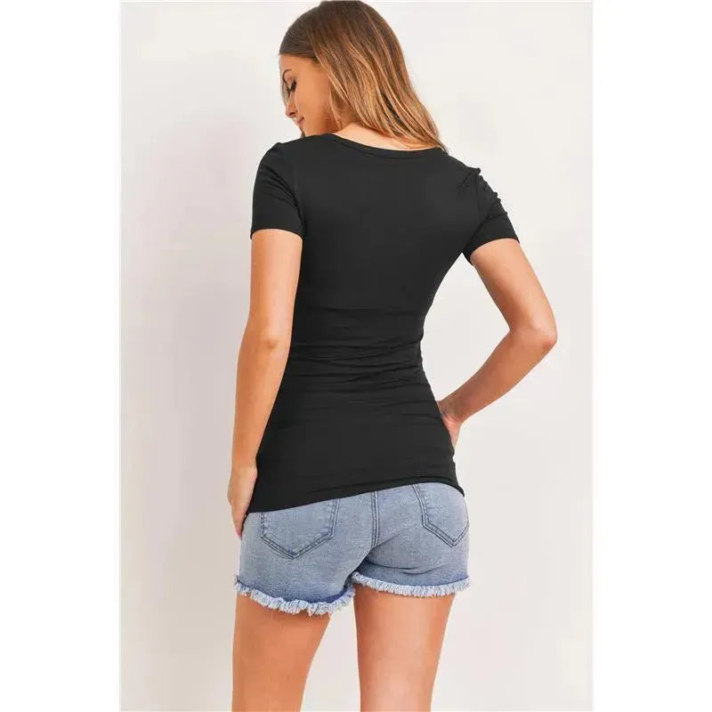 Hello Miz - Top de maternidade básico com decote em V alto com detalhe lateral franzido, preto