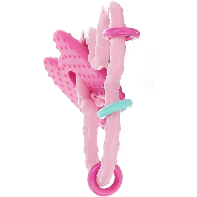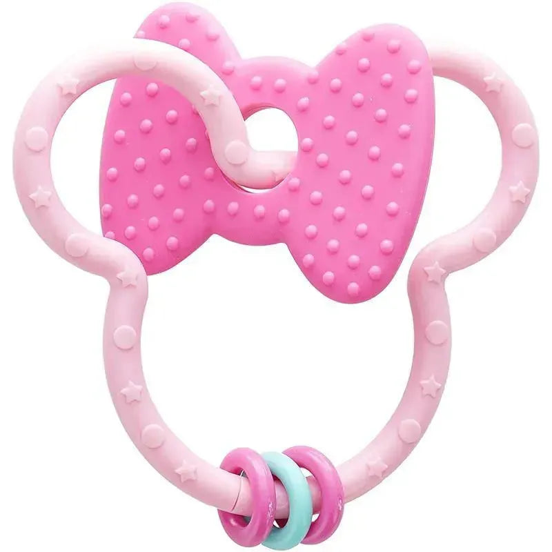 BRINQUEDO DE DEntição: Este brinquedo de anel de dentição apresenta a forma icônica do mouse com um mordedor de silicone texturizado anexado. É o brinquedo perfeito para acalmar as gengivas e os dentes em desenvolvimento do bebê.