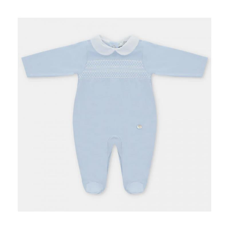 The Martin Aranda Baby Footie Interlock Smock in Celeste Bebé is a charming and comfortable choice for newborns. Made from high-quality interlock cotton, this footie is soft, breathable, and gentle on delicate skin. The elegant smocked detail on the chest adds a classic touch, making it perfect for special occasions or everyday wear. Designed with practical snap closures for easy dressing and diaper changes, this Martin Aranda Footie combines style, comfort, and convenience for your little one.
