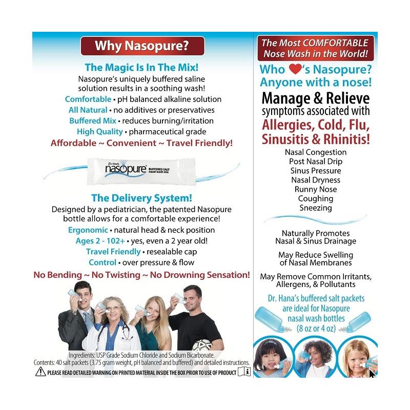 Inclui pacotes de 40 - 3,5 gramas de mistura de lavagem de sal nasa tamponada.