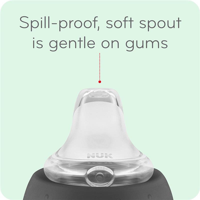 Designed for usage from 6 months onwards, it features a silicone spout that promotes easy flow when sipped. Built by NUK, a trusted brand committed to fostering healthy development from birth to toddlerhood, this cup is a product of over 50 years of high quality, innovative design. It's scientifically proven to support safe development and ease your child's transition journey.