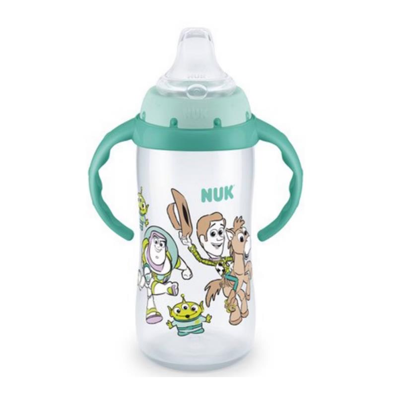 The NUK® Disney Learner Cup easily promotes baby’s transition from breast or bottle to sippy cup. This learner cup features a spill-proof soft spout that is gentle on teeth and gums, and it includes an air vent that helps reduce swallowed air. The baby cup also comes with easy-to-grip handles that can be removed as your child grows. NUK sippy cups are BPA-free and dishwasher-safe. Our 10 oz. learner cups are recommended for ages 9m+ and this one feautures your little one's favorite Toy Story characters: Buzz Lightyear and Woody.