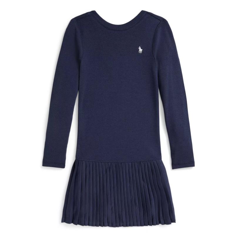The Polo Ralph Lauren Girls Ribbed Pleated Dress offers a balanced combination of comfort and refined styling. Designed with a flattering drop-waist silhouette, this piece creates a polished yet age-appropriate look suitable for multiple occasions.