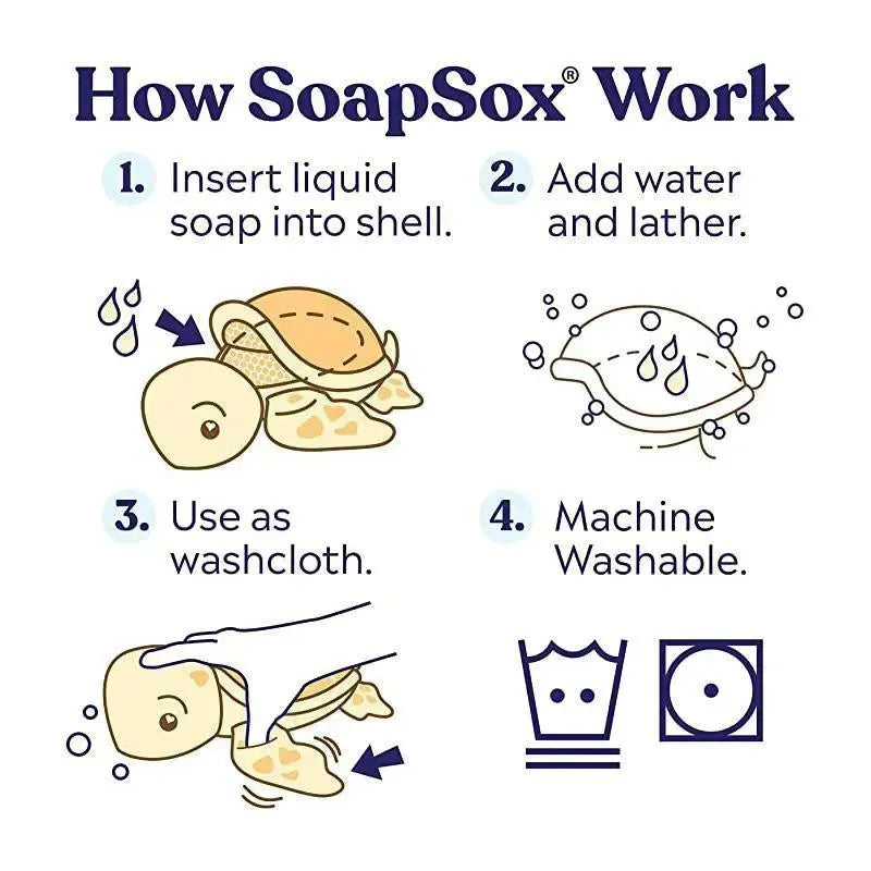 SoapSox é simples e divertido de usar. Basta encher o bolso SoapSox® com o seu sabonete líquido ou em barra favorito e depois adicionar água. A tecnologia SoapSox com patente pendente combina malha e esponja antimicrobiana para criar um interior macio e resistente que permite o máximo de espuma. Aguarde sempre a hora do banho com nossa linha completa de adoráveis auxiliares de banho para crianças. Cada personagem é projetado para entreter seu filho enquanto ele também está ficando limpo.