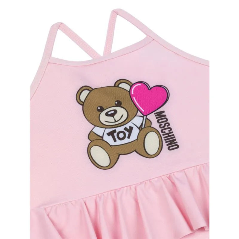 Moschino Baby - Girl Ruffled Swimsuit With Bear Heart Print, Light Pink