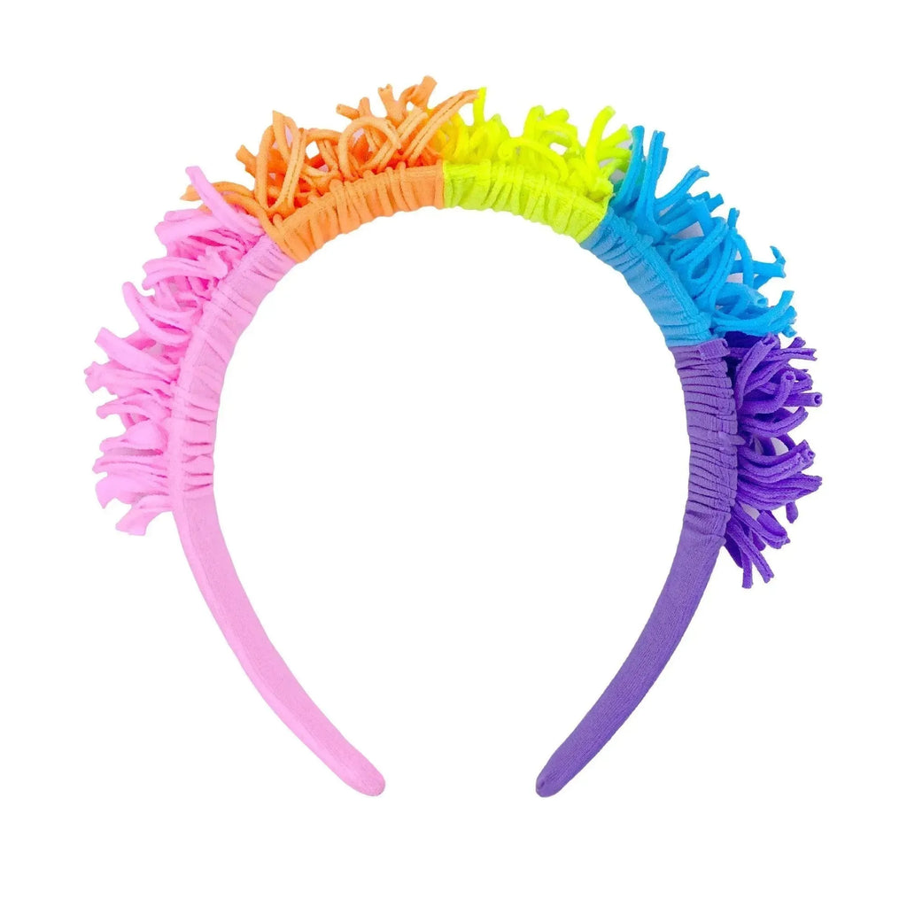 Uma coroa de FRANJA macia torna esta faixa favorita de todos! Cores brilhantes e detalhes extravagantes garantem que este seja o acessório perfeito para uma foto escolar ou uma aventura divertida!
