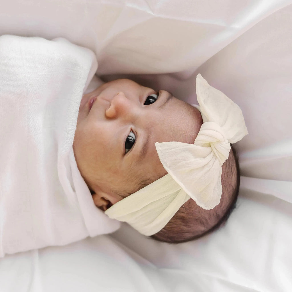 Essas tiaras são dimensionadas para prematuros e recém-nascidos pequenos de até 4,5 kg. A faixa de cabeça é costurada em um diâmetro de 5" (10" de circunferência), lembre-se de que a medição é feita antes de esticar. O laço mede aproximadamente 3 "de diâmetro. O detalhe da costura exposta e uma borda crua são a assinatura do Baby Bling! Este estilo é costurado em duas peças e pode ser desmontado para lavar à mão ou para misturar e combinar. O material Itty Bitty Knot é um náilon macio, produzido de acordo com nossas especificações, nos EUA. Cada faixa de cabeça é costurada à mão e amarrada por mulheres em nossa comunidade local. Devido à natureza da produção em pequenos lotes, a cor e o tamanho podem variar ligeiramente.
