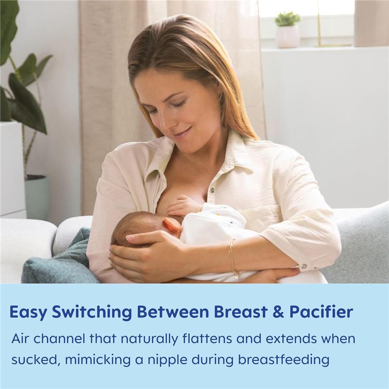 Superfície texturizada e várias pequenas aberturas no escudo da chupeta permitem que o ar circule e a pele do bebê respire
