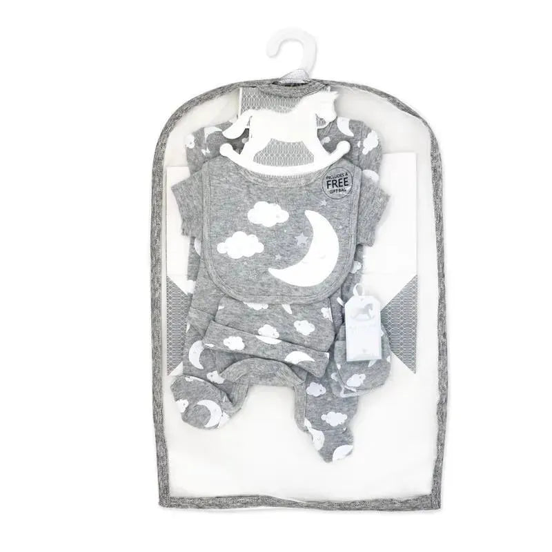 Rose Textiles - Conjunto de bolsa de malha 5Pk bebê neutro cinza lua lua