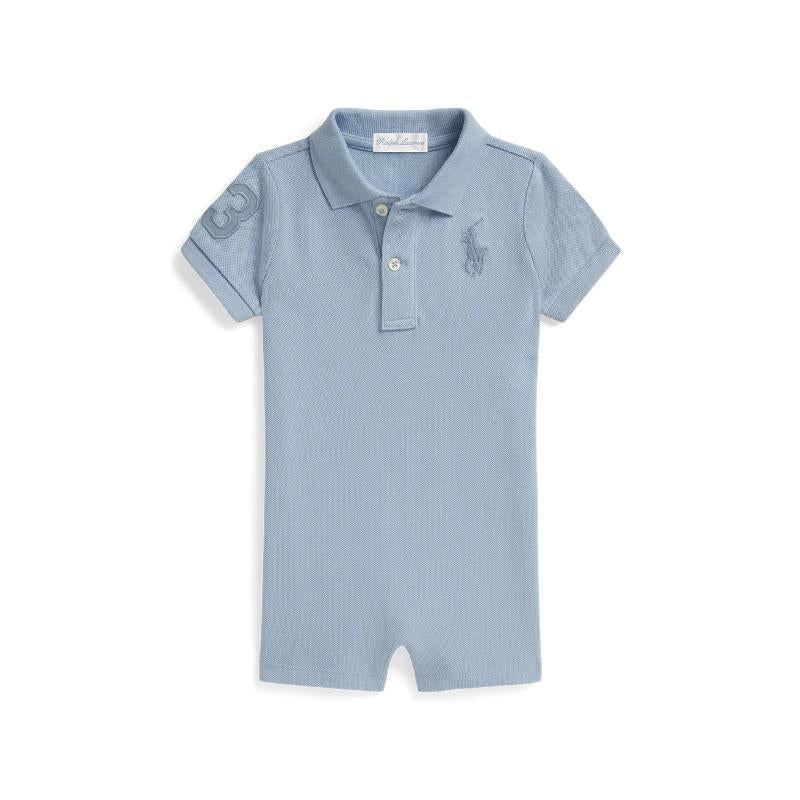 Ralph Lauren Baby Short-Sleeve Basic Mesh Big Pony Polo Shortall, Estate Blue