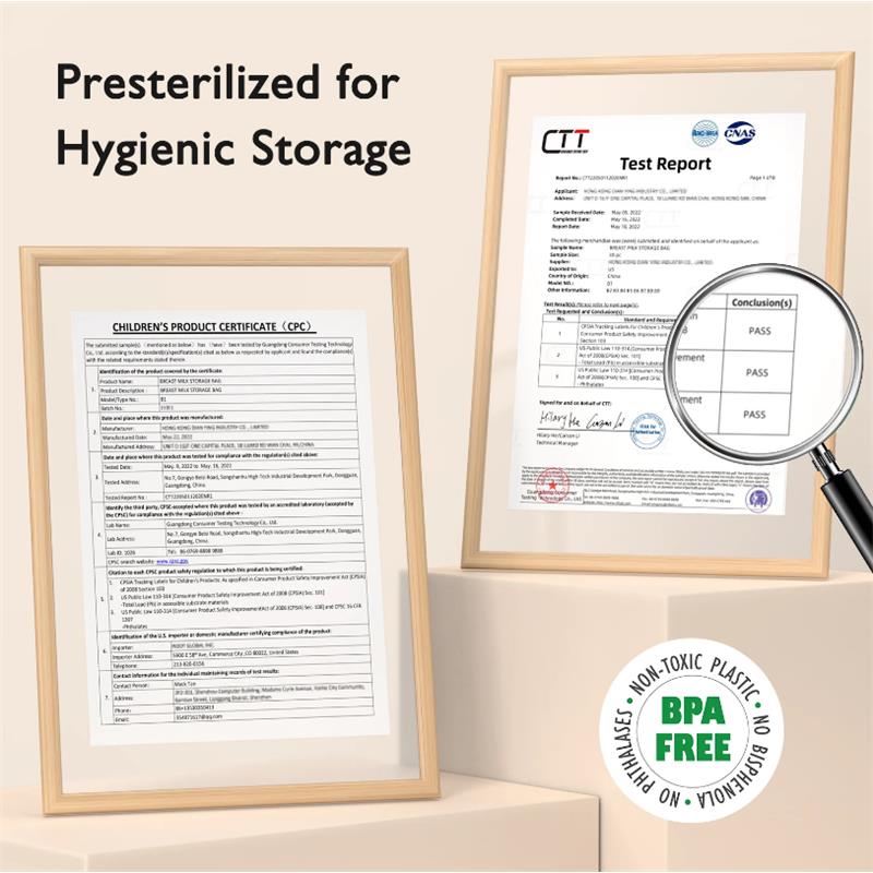 Moms on the go can pump milk throughout the day and bring it home to freeze for long-term storage. Which the extra-durable design and double zip seals, the milk storage bags will protect precious breast milk. The gusseted bottom holds the bag upright while the perforated top makes for easy-open. Once frozen, bags can be stored flat or standing up to increase storage flexibility. With a large write-on area, so you can document the date and other vital information for safer storage and use. The bags are made from food-grade, BPA free material