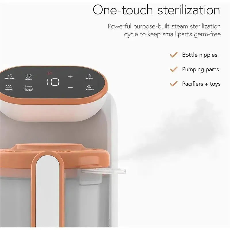 FÁCIL DE LIMPAR COM MENOS SUGESTÃO: Tudo em um significa menos pratos e fácil preparação e limpeza - A máquina de vapor e purê para bebês da Quark possui ciclos automáticos de limpeza e esterilização, além de componentes próprios para lava-louças para lidar com sujeiras e manchas extra difíceis