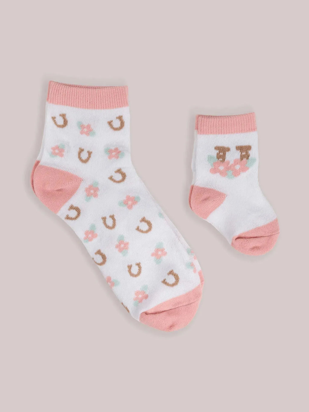 Mamãe e bebê podem ter pés aconchegantes e coordenados com o conjunto de meias Mama & Me da JuJuBe × Studio Oh! Feitas de poliéster e spandex para maior conforto, essas meias fofas e coloridas combinando são perfeitas para fotos, para relaxar em casa e fazer uma declaração de moda “irmã” em qualquer lugar. As meias apresentam designs irresistíveis e modernos que são uma adição elegante a qualquer conjunto de mamãe e bebê. As meias para bebês são para bebês de 3 a 12 meses e as meias para adultos são de tamanho único.